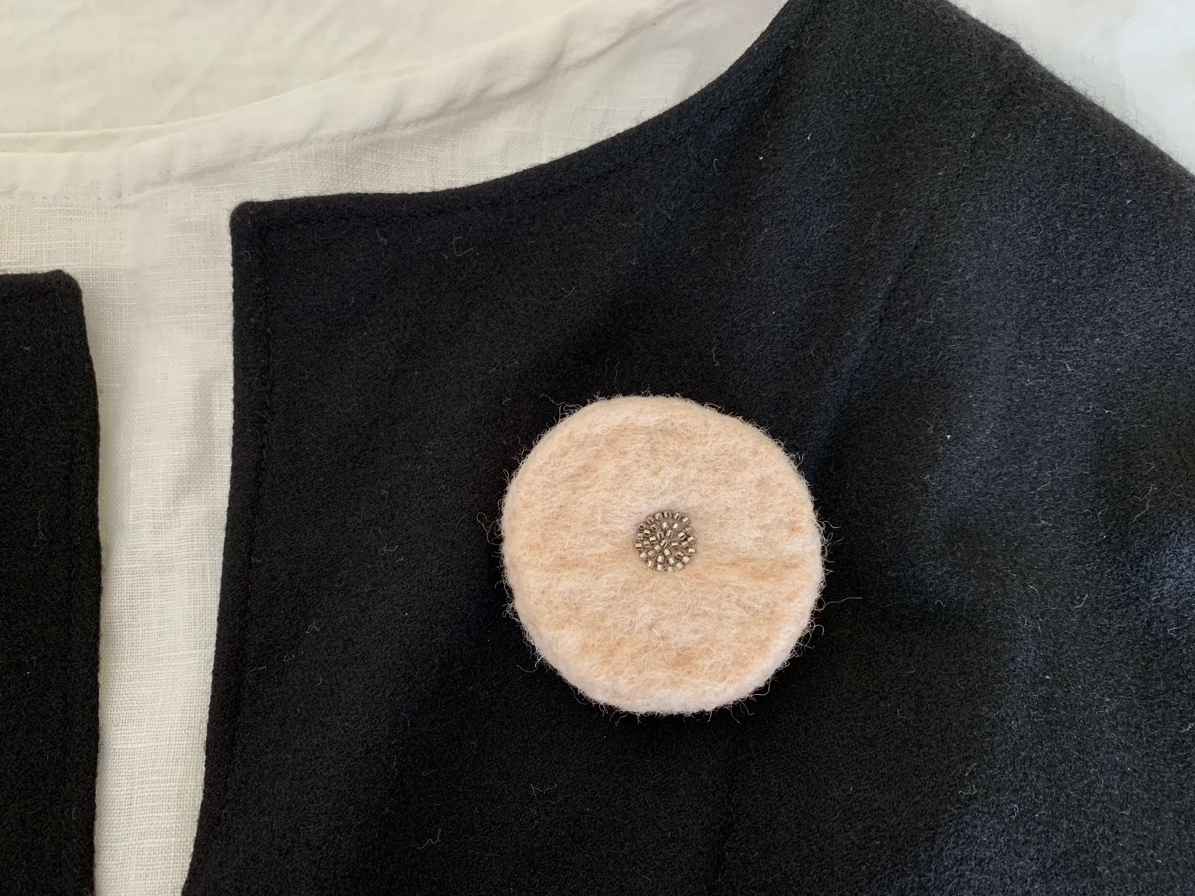 ベージュの羊毛とニッケルメッキビーズの大きなブローチ