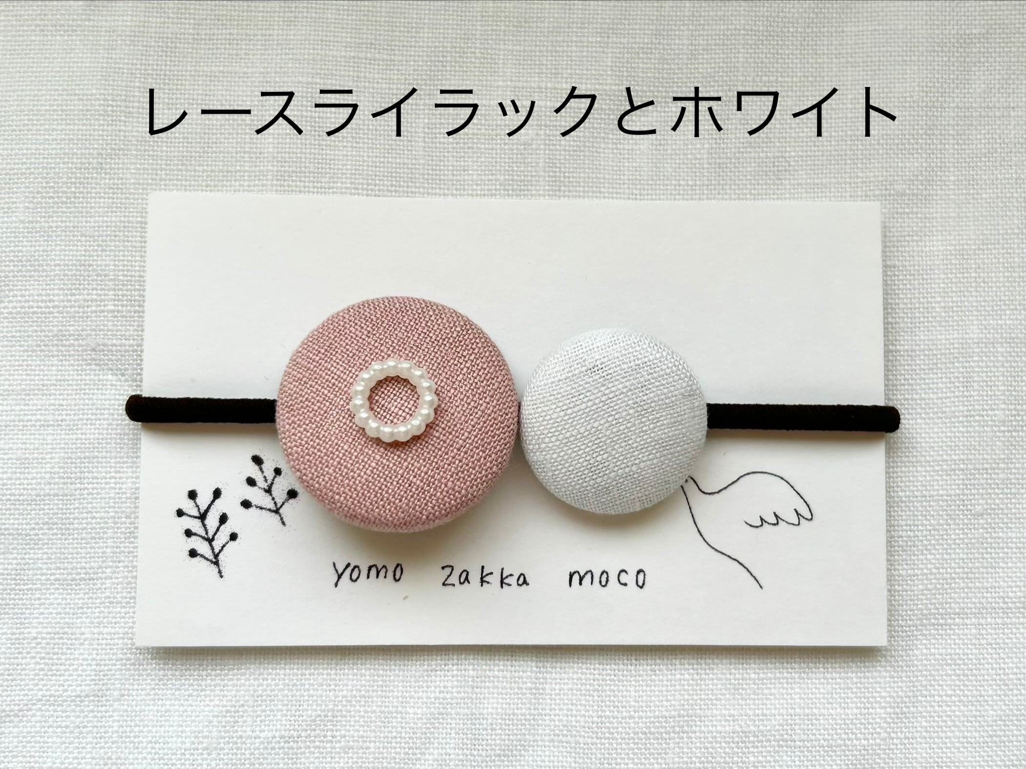 くるみボタンが2個ついたヘアゴムです。