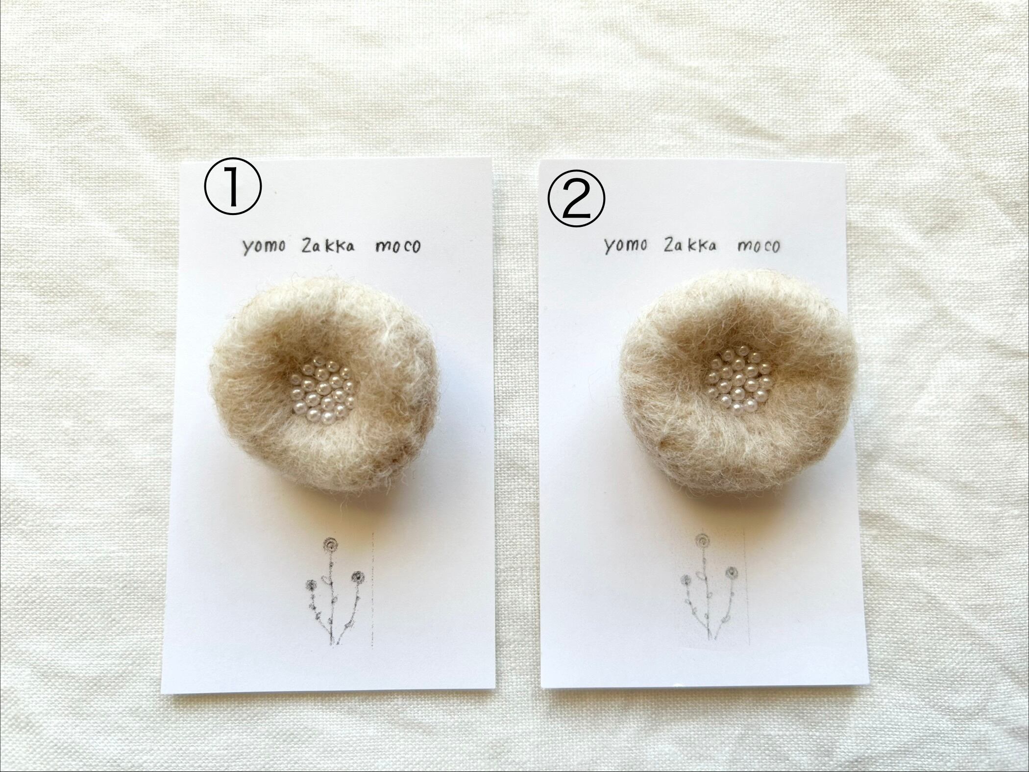 ベージュの羊毛とパールビーズのぷっくりおはなブローチ