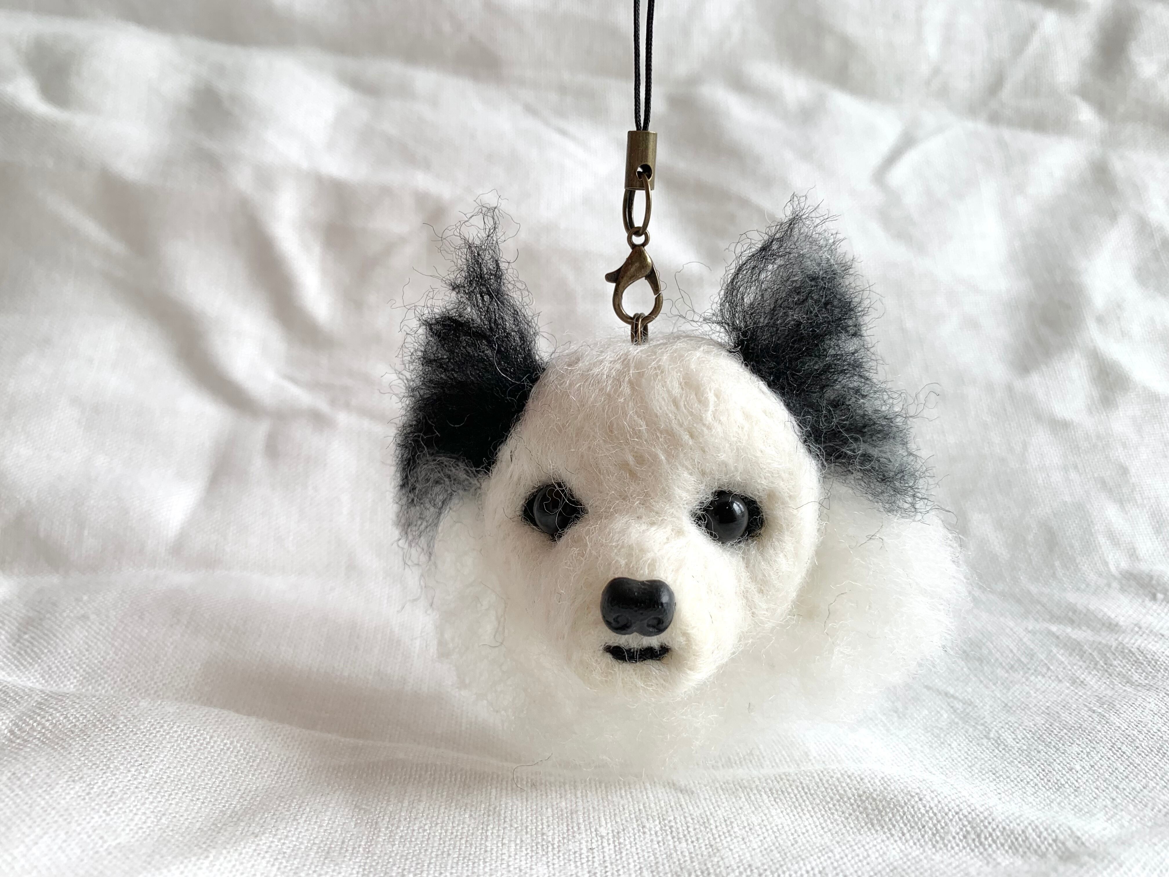 ロングコートチワワのストラップ 送料無料 犬 羊毛フェルト