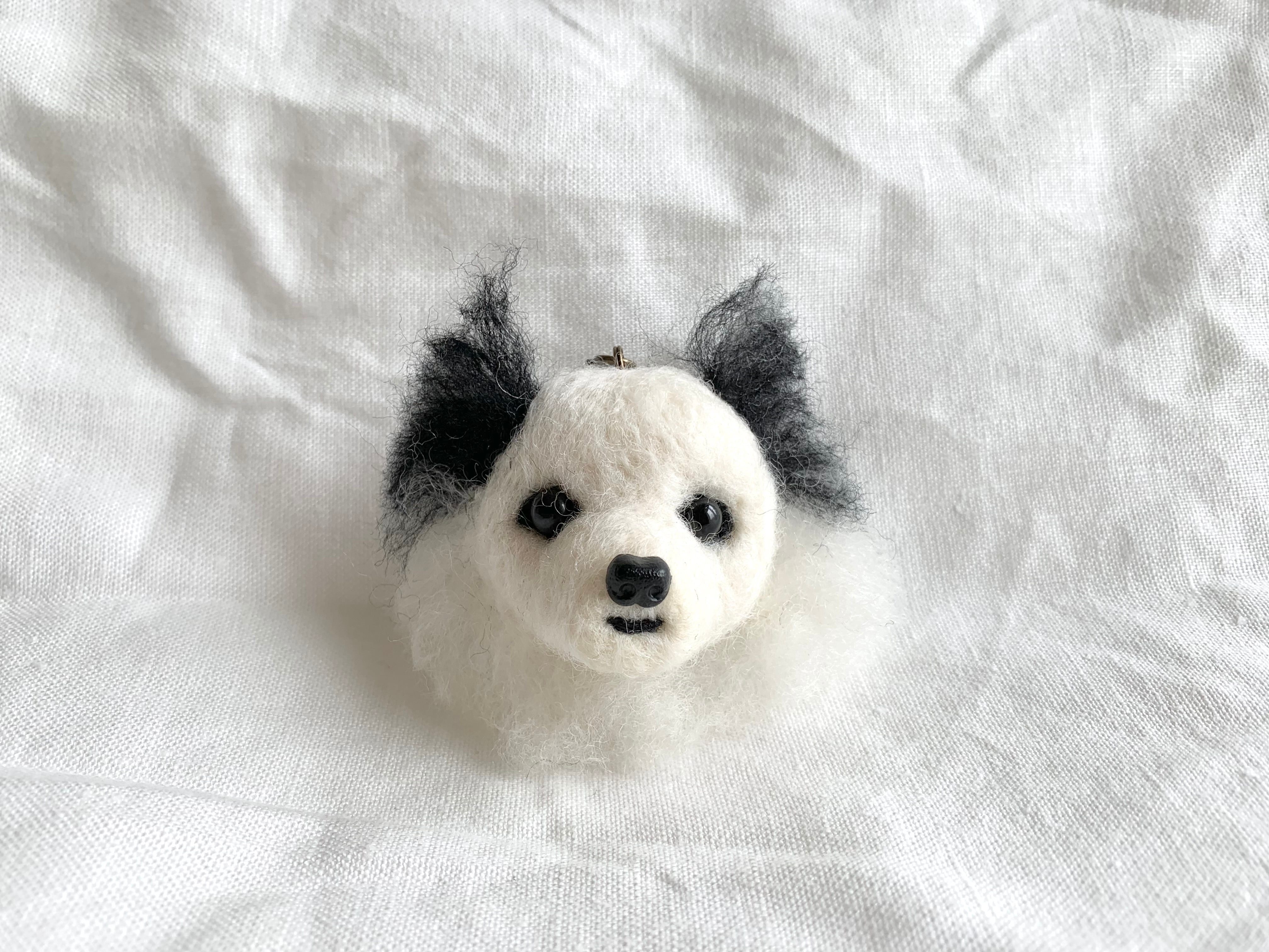 目と鼻とストラップ以外は全て羊毛を針で刺して仕上げています。