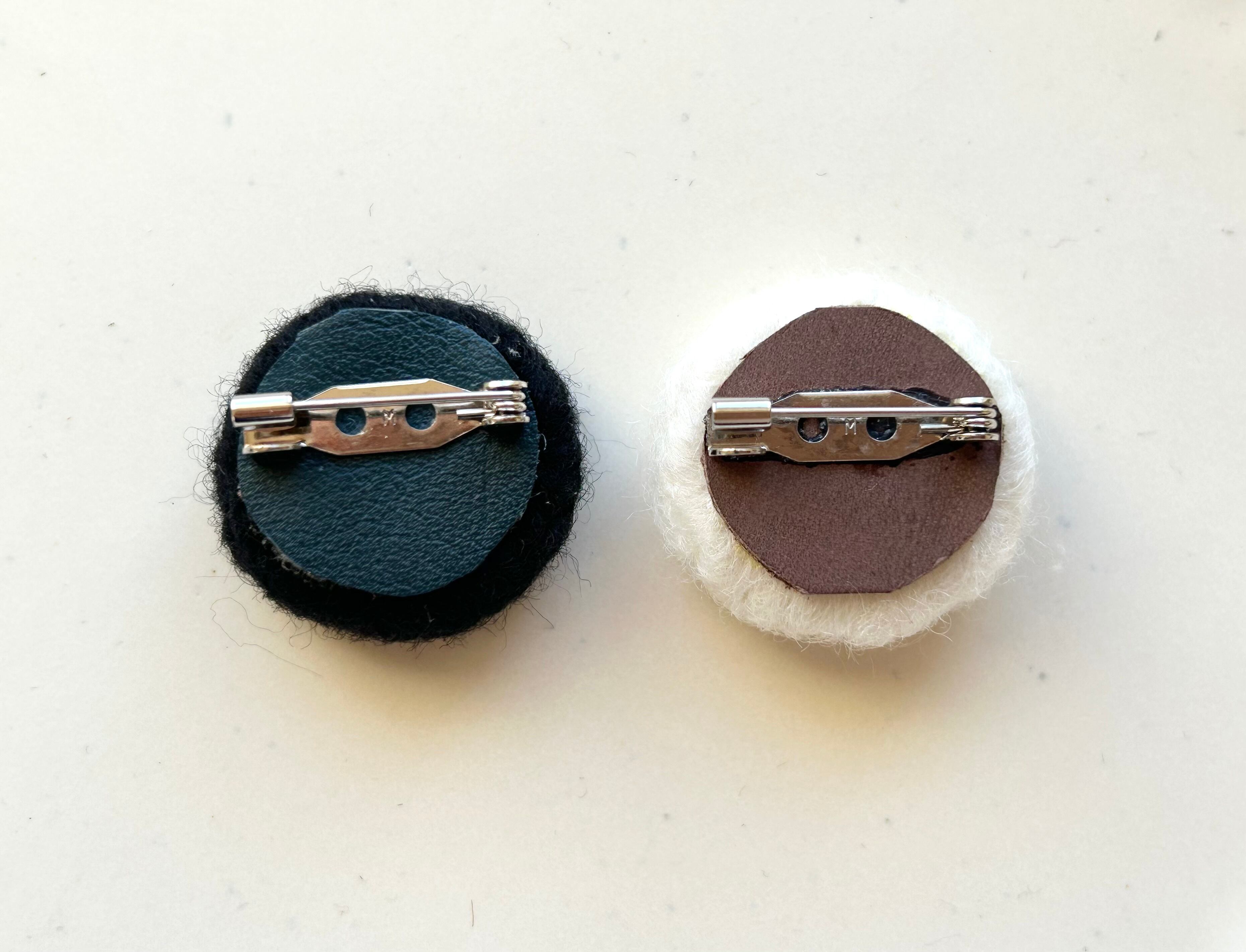 2色の羊毛ブローチ 黒&白